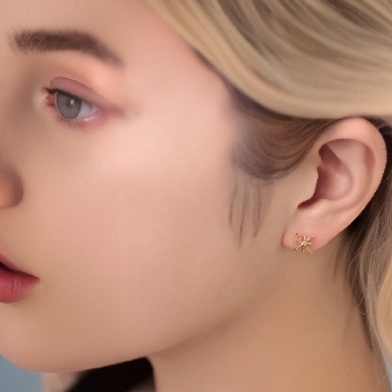 ダイヤモンドをはじめとした小さな天然石をあしらった八芒星・オクタグラムのピアスです。