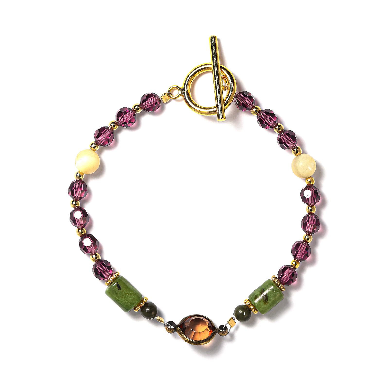 【LOVEBUZZ】ブレスレット:マンテルと紫チェコビーズのブレスレット