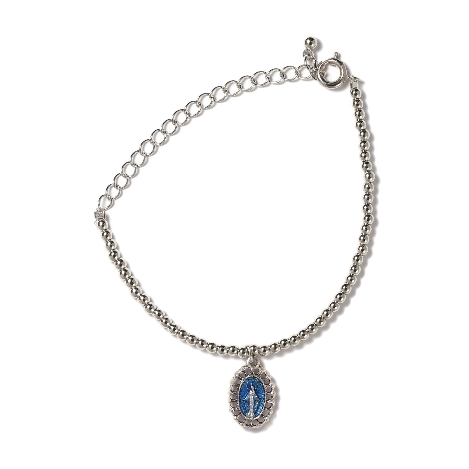 Tayiブレスレット:青い楕円メダイユとシルバービーズ