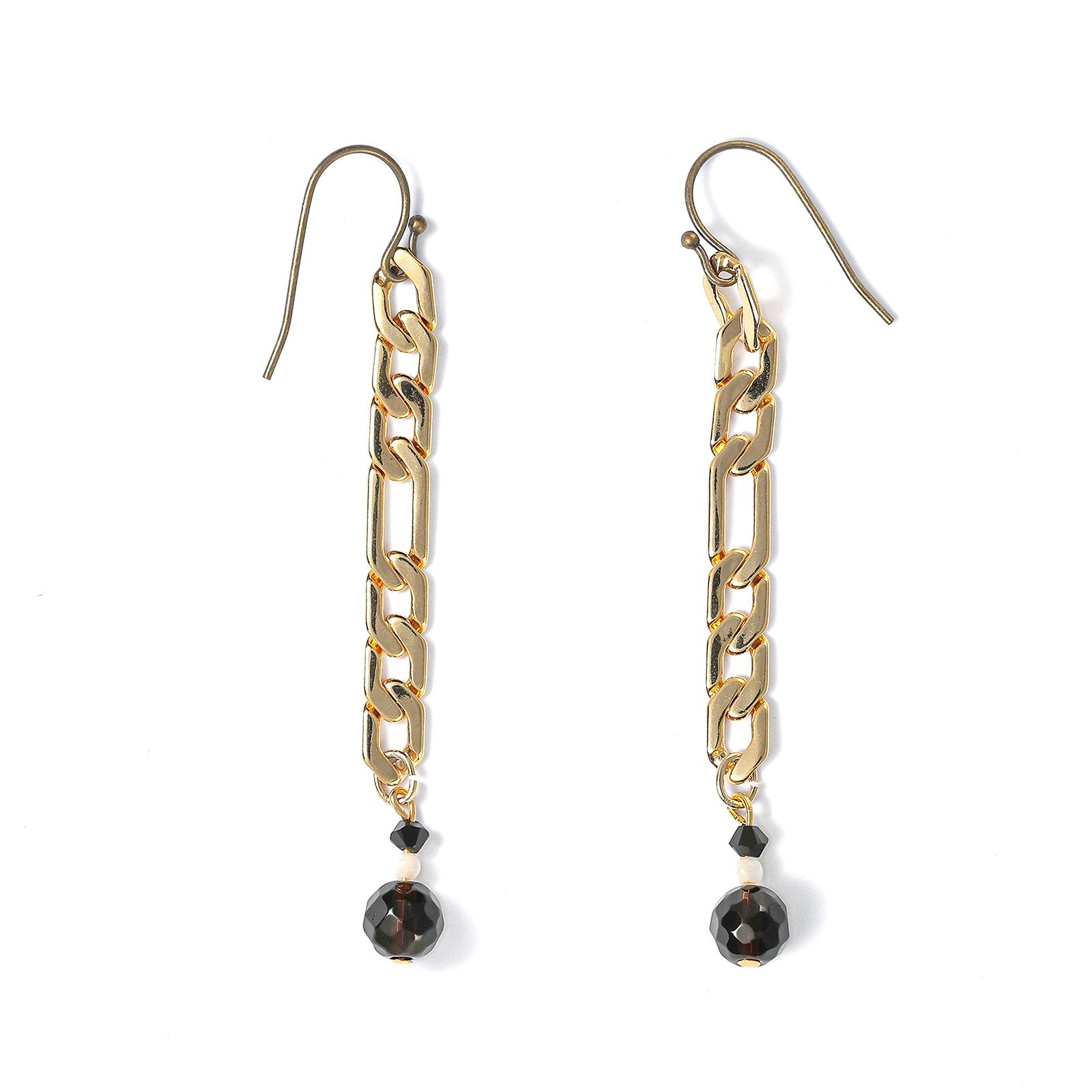 【LOVEBUZZ】ピアス:再構築チェーンとスモーキークオーツ