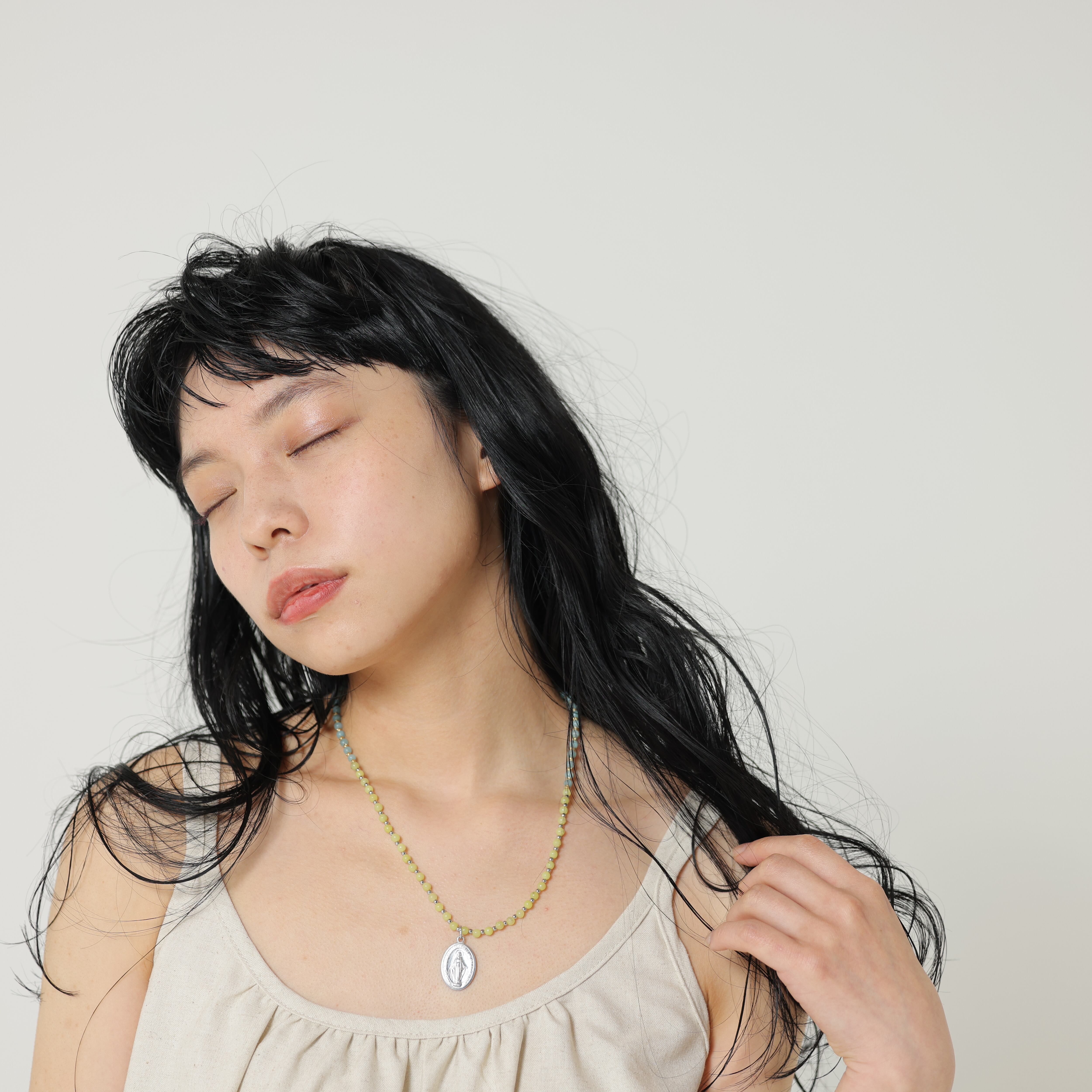 海を望むレモン畑でどろんこになりながら収穫のお手伝いをした時の気持ちになれそうな、レモンクオーツとアマゾナイトの組み合わせが涼しげなネックレスです。