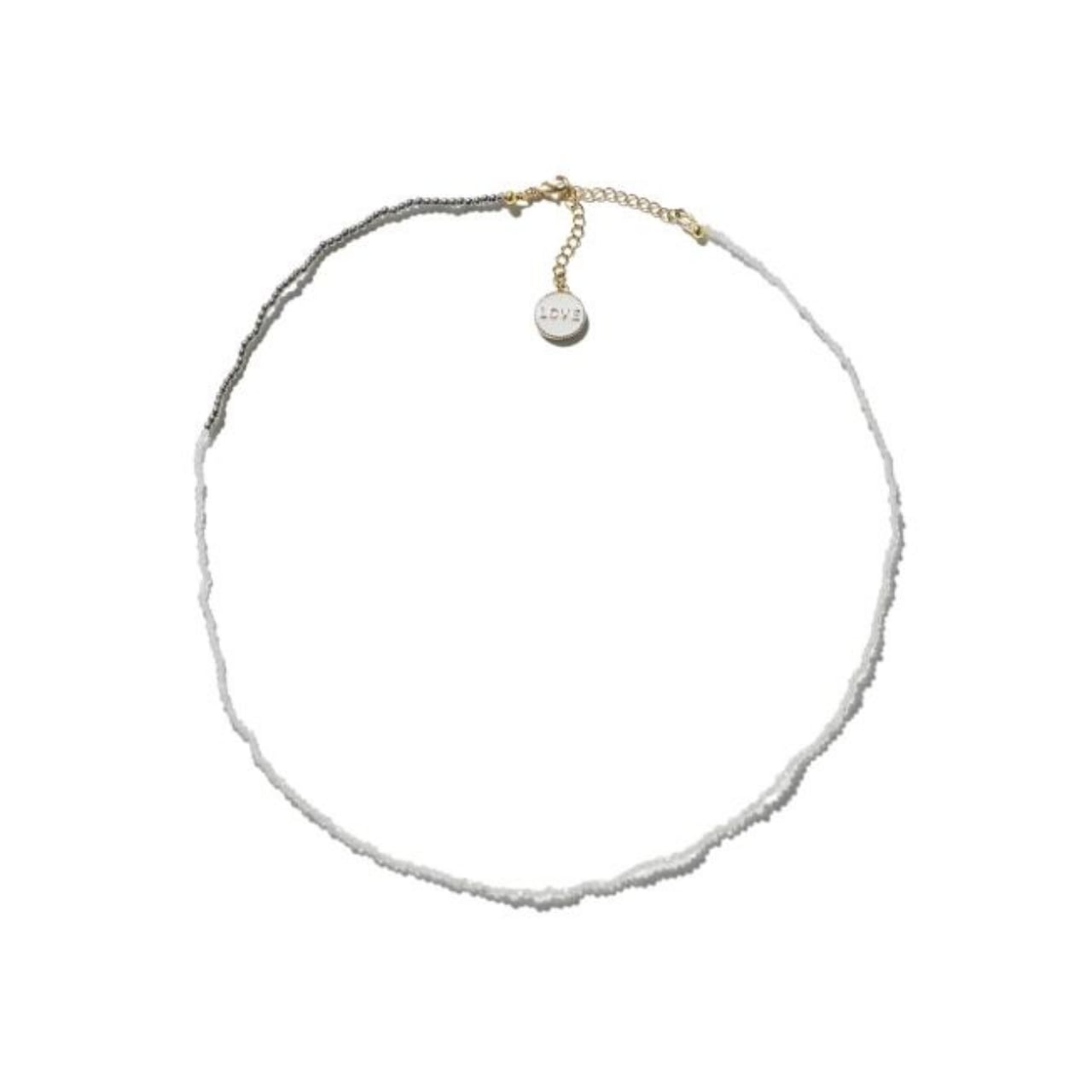 ふわりとした光を内側から放つムーンストーンと銀ビーズの組み合わせです。レイヤードで使うネックレスのひとつとしても手に入れておきたい細くて、あまり主張しない使いやすいアイテム。チャームはもちろん前にもってきてもいいのですが、もともとアジャスターである部分につけてあるので、背中に持ってきても素敵です。